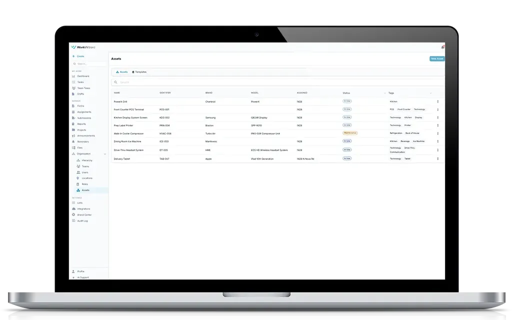 WorkWizard gives you a complete asset management system designed for multi-location businesses. Keep all asset information, maintenance records, assignments, and activity history organized in one place.